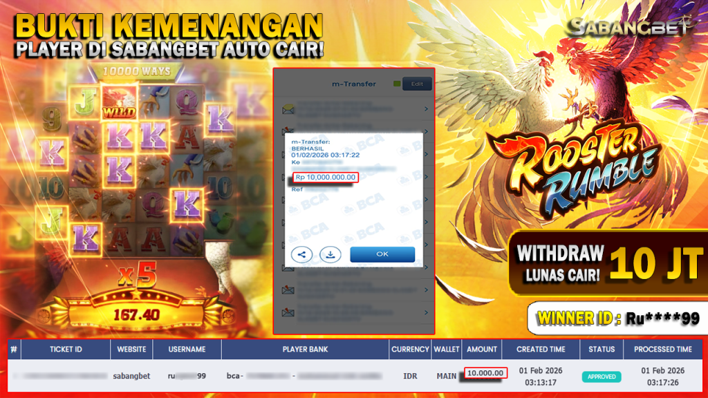 BUKTI KEMENANGAN 01 February 2026 DI GAME Rooster Rumble WD 10 JUTA