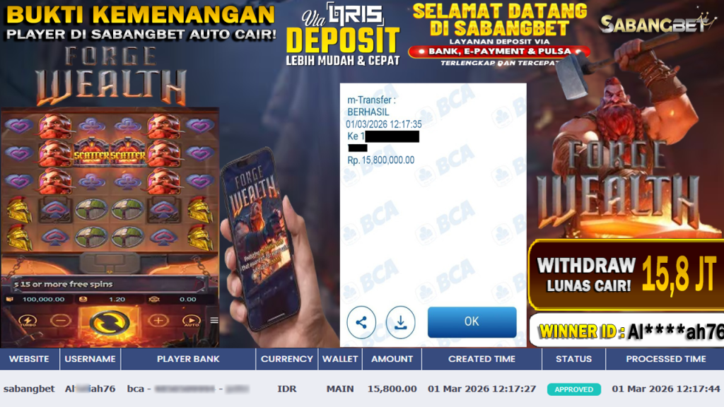 BUKTI KEMENANGAN 01 MARET 2026 DI GAME FORGE OF WEALTH WD 15,8 JUTA