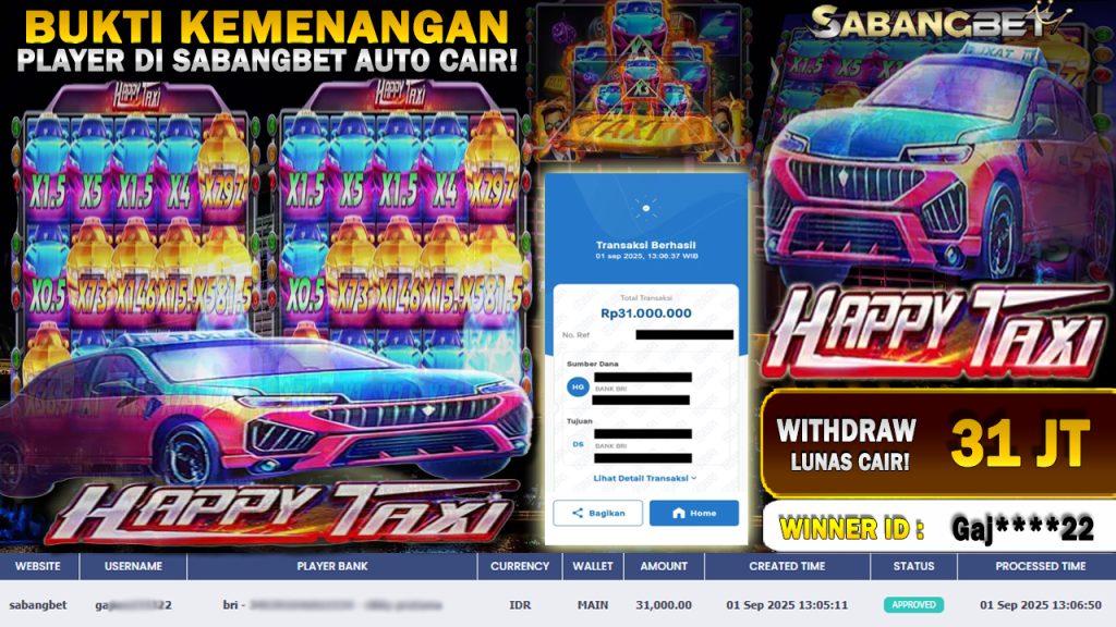 BUKTI KEMENANGAN 01 SEPTEMBER 2025 DI GAME HAPPY TAXI WD 31 JUTA