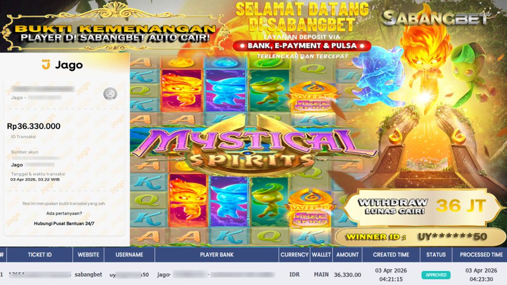 BUKTI KEMENANGAN 03 APRIL 2026 DI GAME MYSTICAL SPIRITS WD 36 JUTA