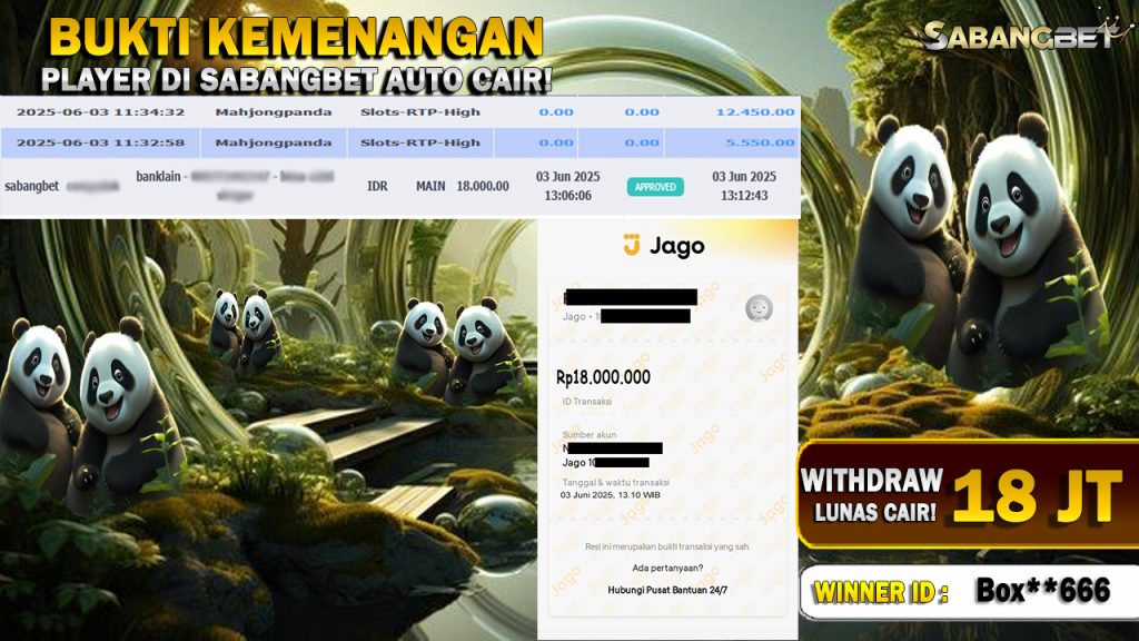 BUKTI KEMENANGAN 03 JUNI 2025 DI GAME MAHJONG PANDA WD 18 JUTA