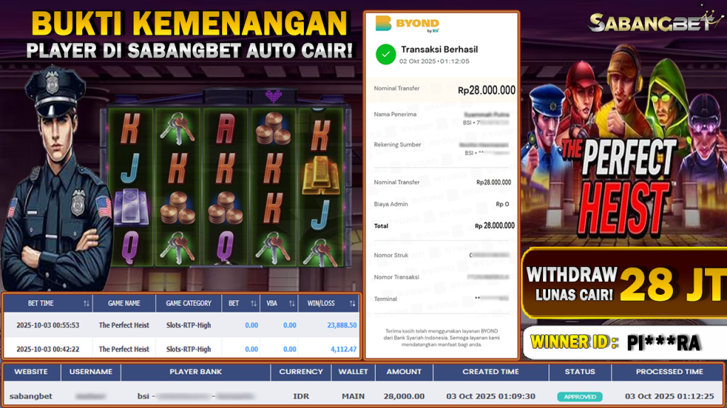 BUKTI KEMENANGAN 03 OKTOBER 2025 DI GAME THE PERFECT HEIST WD 28 JUTA