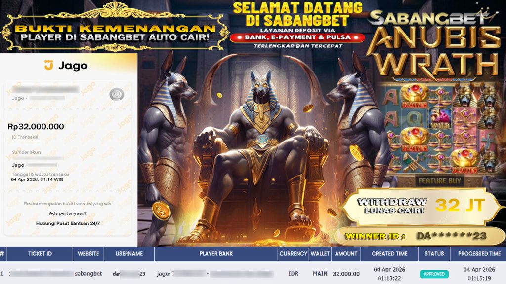 BUKTI KEMENANGAN 04 APRIL 2026 DI GAME ANUBIS WRATH WD 32 JUTA