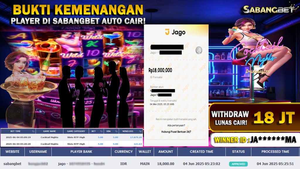 BUKTI KEMENANGAN 04 JUNI 2025 DI GAME COCKTAIL NIGHTS WD 18 JUTA