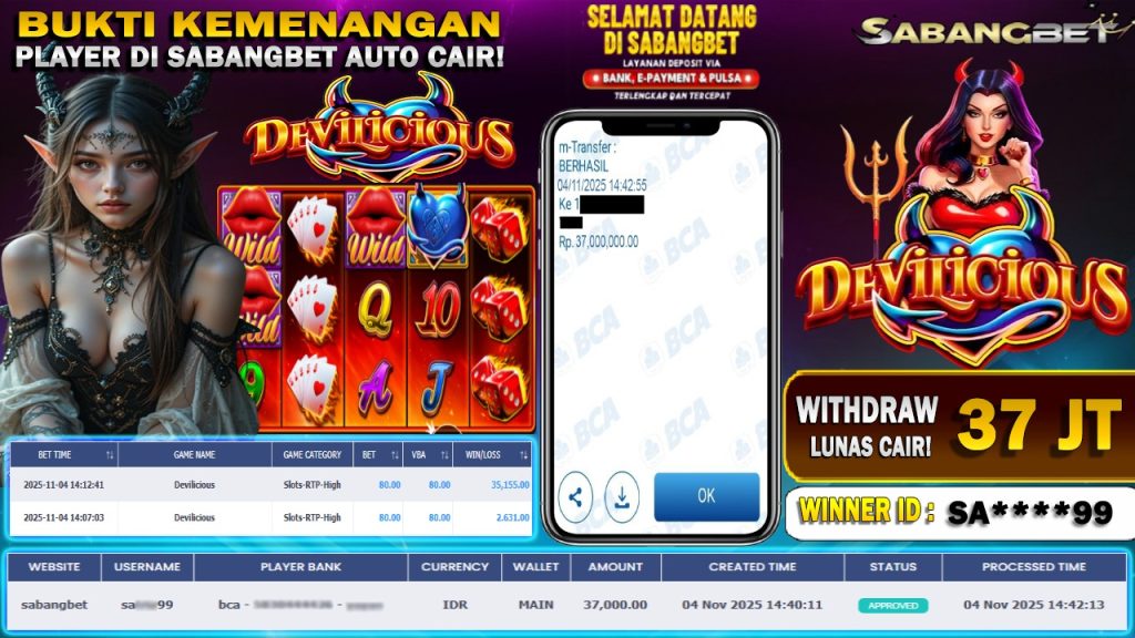 BUKTI KEMENANGAN 04 NOVEMBER 2025 DI GAME DEVILICIOUS 37 JUTA