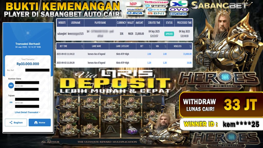 BUKTI KEMENANGAN 04 SEPTEMBER 2025 DI GAME HEROES RISE OF LEGEND WD 33 JUTA