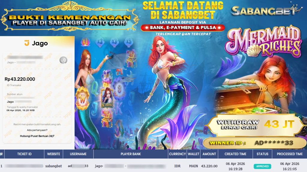 BUKTI KEMENANGAN 06 APRIL 2026 DI GAME MERMAID RICHESWD 43 JUTA