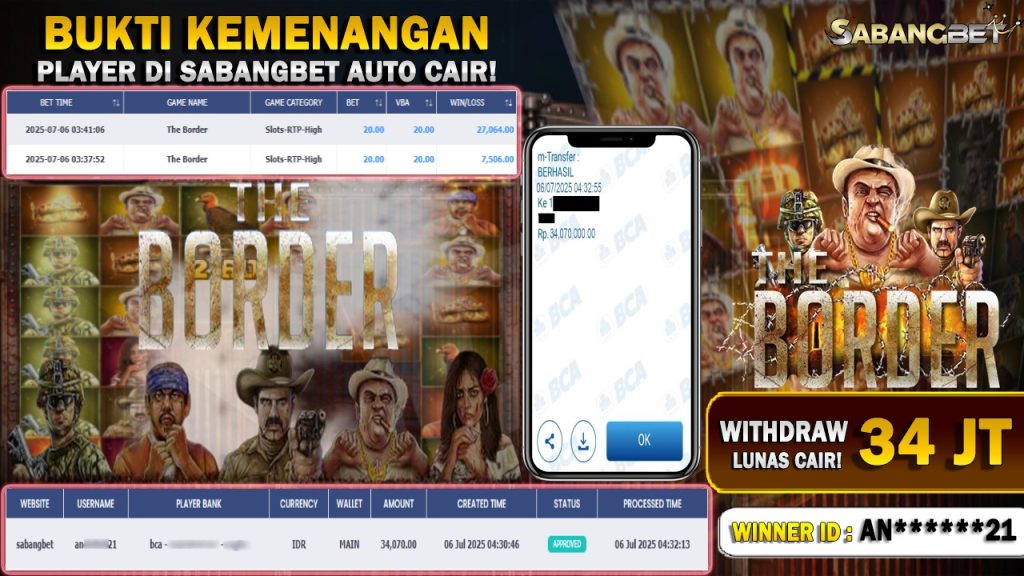 BUKTI KEMENANGAN 06 JULY 2025 DI GAME THE BORDER WD 34 JUTA