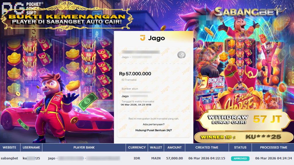 BUKTI KEMENANGAN 06 MARET 2026 DI GAME FORTUNE HORSE WD 57 JUTA