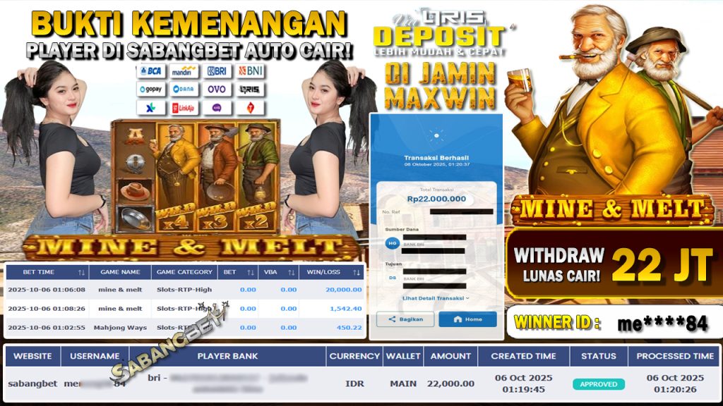 BUKTI KEMENANGAN 06 OKTOBER 2025 DI GAME MINE&MELT WD 22 JUTA
