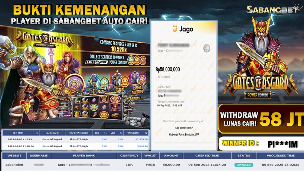 BUKTI KEMENANGAN 06 SEPTEMBER 2025 DI GAME GATES OF ASGARD WD 58 JUTA