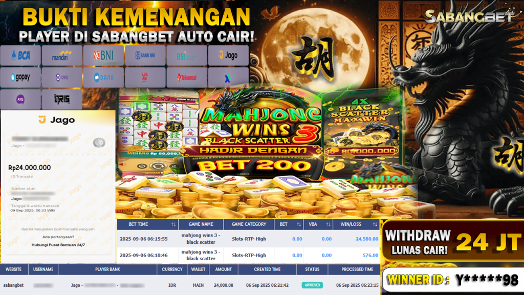 BUKTI KEMENANGAN 06 SEPTEMBER 2025 DI GAME MAHJONG WINS 3 – BLACK SCATTER ( PRAGMATIC PLAY ) WD 24 JUTA
