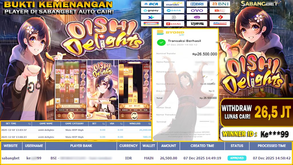 BUKTI KEMENANGAN 07 DESEMBER 2025 DI GAME OISHI DELIGHTS WD 26,5 JUTA