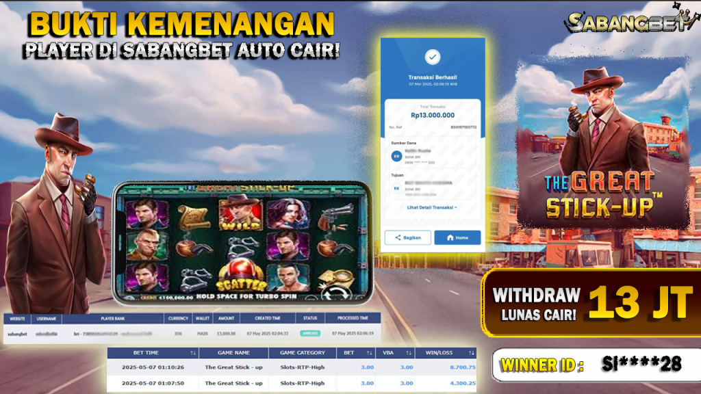 BUKTI KEMENANGAN 07 MEI 2025 DI GAME THE GREAT STICK – UP WD 13 JT