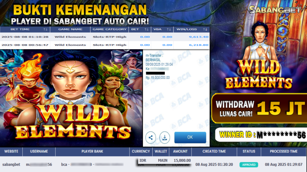 BUKTI KEMENANGAN 08 AGUSTUS 2025 DI GAME WILD ELEMENTS WD 15 JUTA