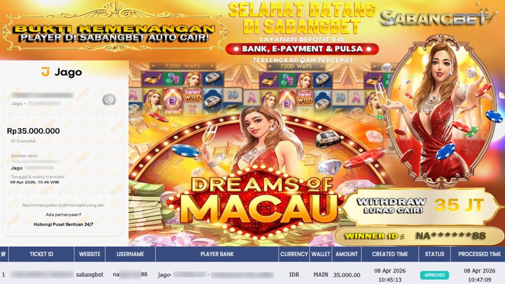 BUKTI KEMENANGAN 08 APRIL 2026 DI GAME DREAMS OF MACAU WD 35 JUTA