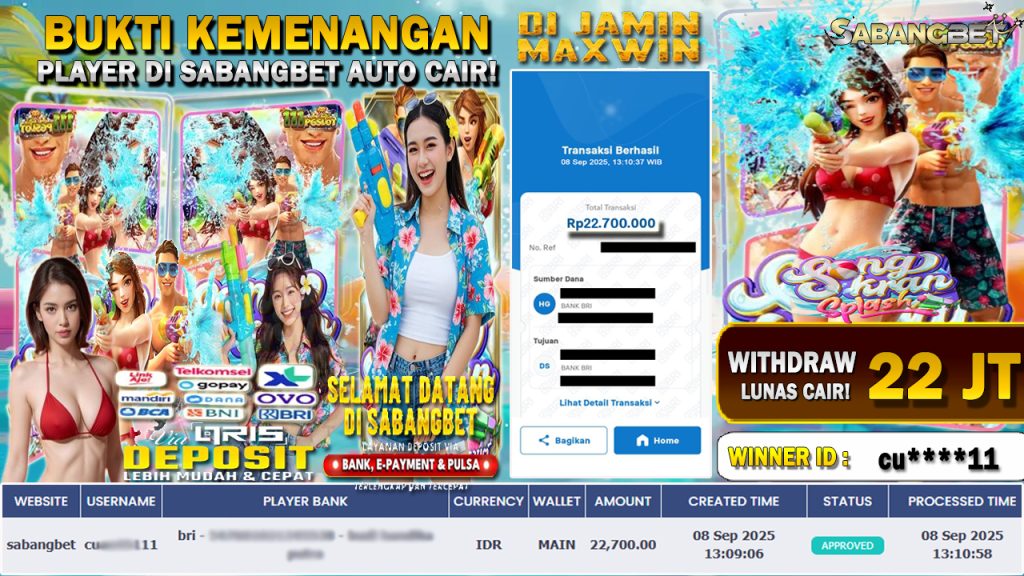 BUKTI KEMENANGAN 08 SEPTEMBER 2025 DI GAME SONGKRAN SPLASH WD 22 JUTA