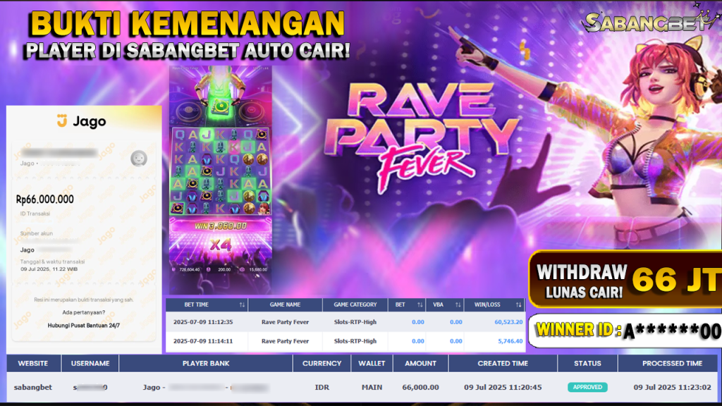 BUKTI KEMENANGAN 09 JULI 2025 DI GAME RASE PARTY FEVER WD 66 JUTA