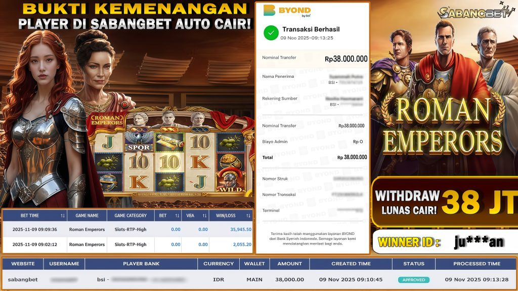 BUKTI KEMENANGAN 09 NOVEMBER 2025 DI GAME ROMAN EMPERORS WD 38 JUTA