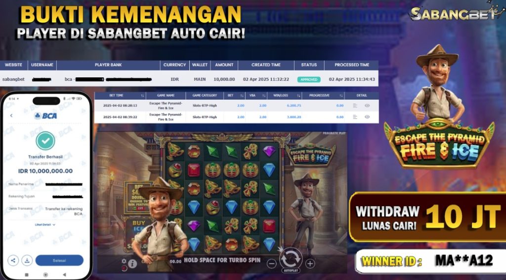 BUKTI KEMENANGAN 2 APRIL 2025 DI GAME ESCAPE THE PYRAMID FIRE & ICE WD 10 JUTA