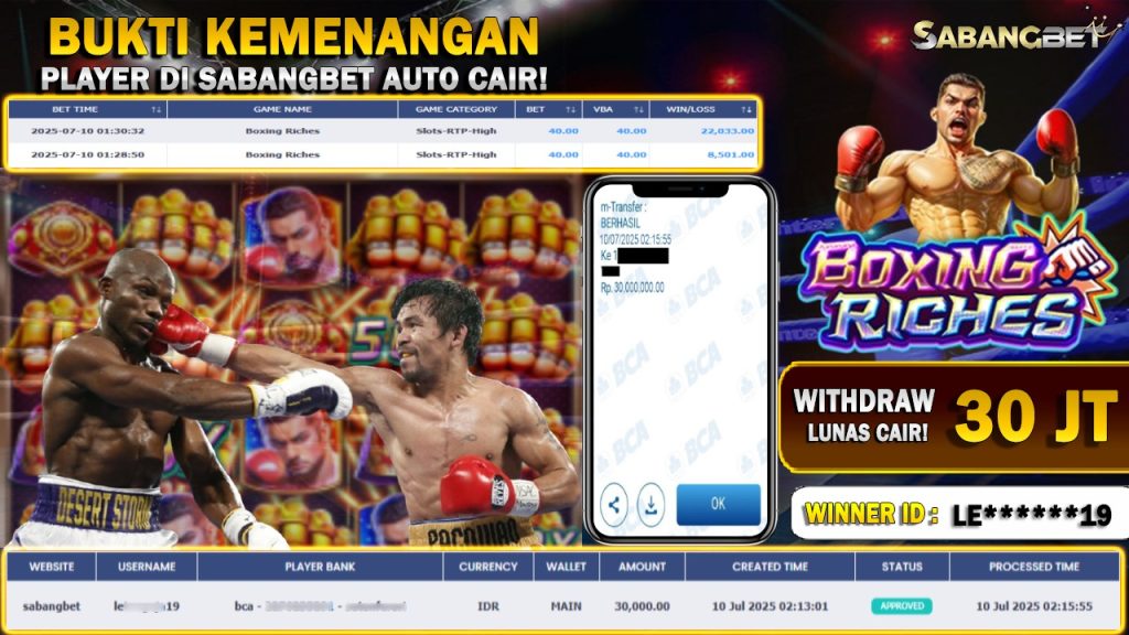 BUKTI KEMENANGAN 10 JULY 2025 DI GAME BOXING RICHES WD 30 JUTA