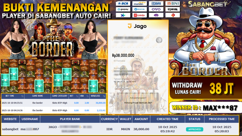 BUKTI KEMENANGAN 10 OKTOBER 2025 DI GAME THE BORDER WD 38 JUTA