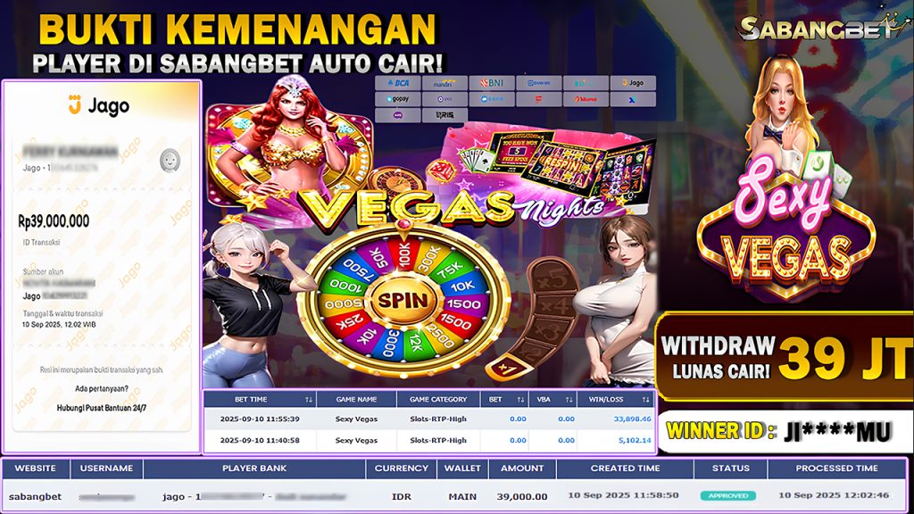 BUKTI KEMENANGAN 10 SEPTEMBER 2025 DI GAME SEXY VEGAS WD 39 JUTA