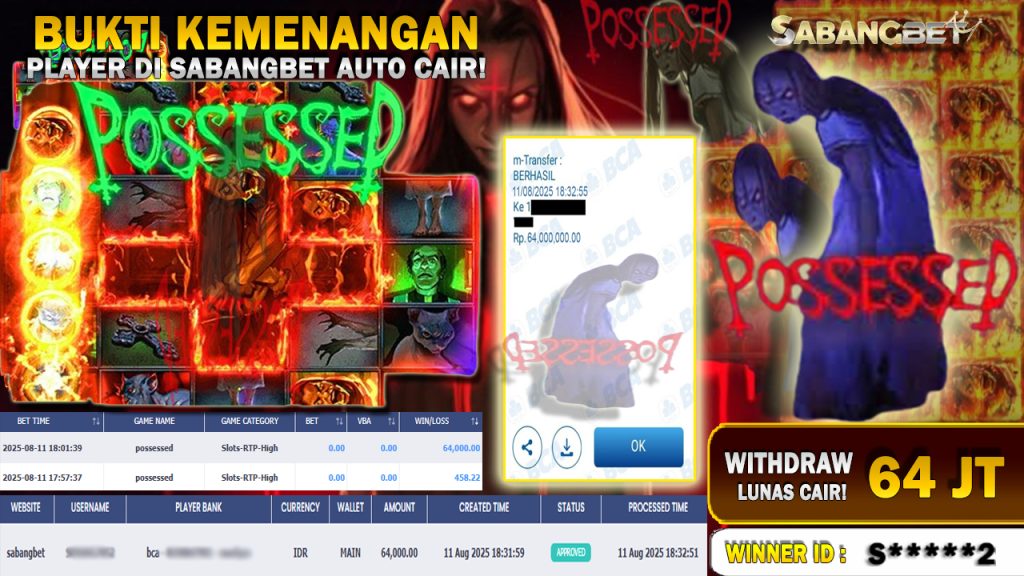 BUKTI KEMENANGAN 11 AGUSTUS 2025 DI GAME POSSESSED WD 64 JUTA