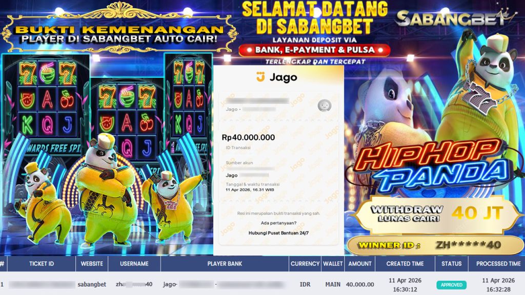 BUKTI KEMENANGAN 11 APRIL 2026 DI GAME HIP HOP PANDA WD 40 JUTA