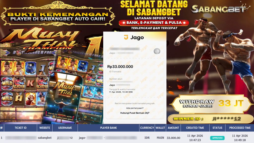 BUKTI KEMENANGAN 11 APRIL 2026 DI GAME MUAY THAI CHAMPION WD 33 JUTA
