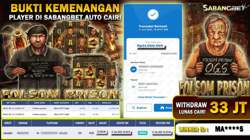 BUKTI KEMENANGAN 11 JUNI 2025 DI GAME FOLSOM PRISON WD 33 JUTA