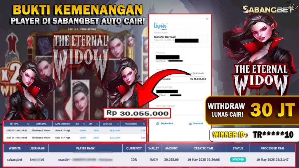 BUKTI KEMENANGAN 11 MEI 2025 DI GAME THE ETERNAL WIDOW WD 30 JT
