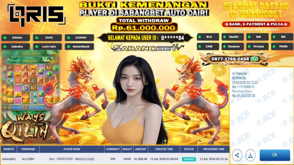 BUKTI KEMENANGAN 12 APRIL 2026 DI GAME WAYS OF THE QILIN WD 61 JUTA