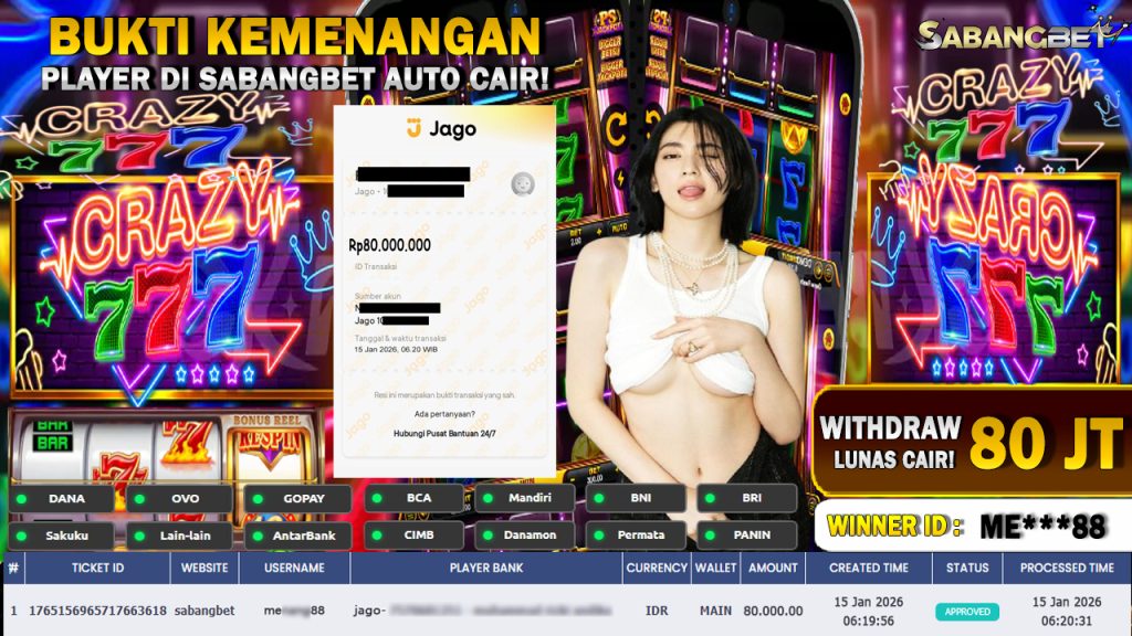 BUKTI KEMENANGAN 14 JANUARI 2026 DI GAME CREZY777 WD 80 JUTA