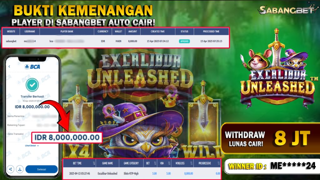 BUKTI KEMENANGAN 15 APRIL 2025 DI GAME EXCALIBUR UNLEASHED WD 8 JUTA