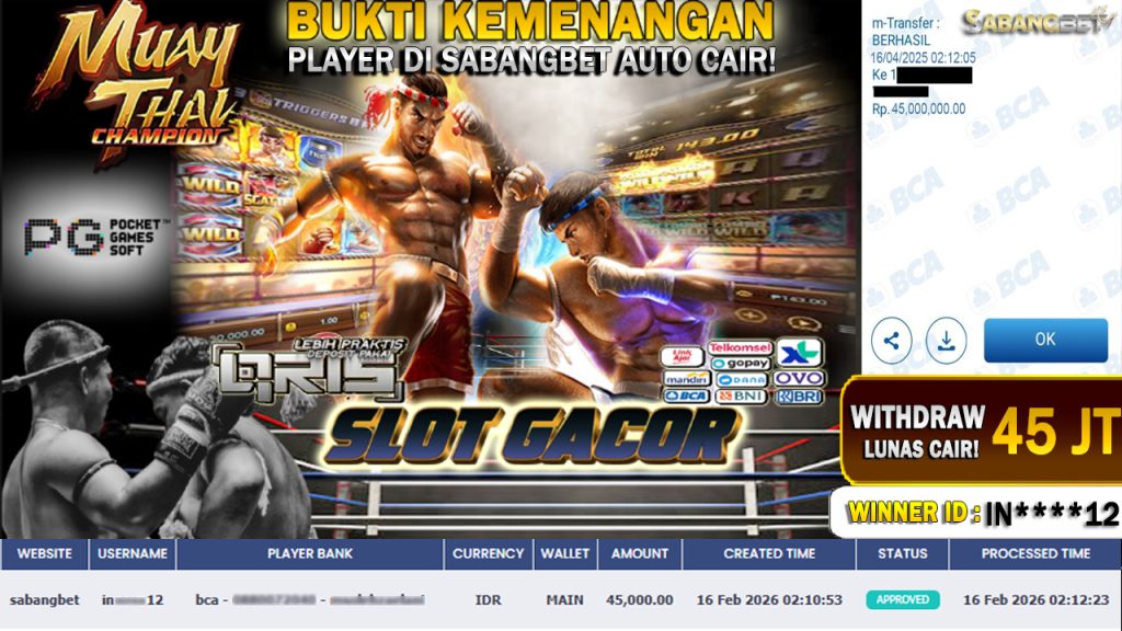 BUKTI KEMENANGAN 15 FEBRUARI 2026 DI GAME MUAY THAI CHAMPION WD 45 JUTA