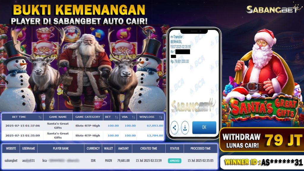 BUKTI KEMENANGAN 15 JULY 2025 DI GAME SANTAS GREAT GIFTS WD 79 JUTA