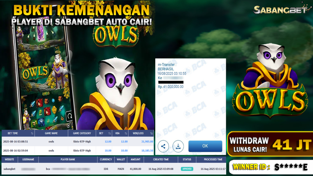 BUKTI KEMENANGAN 16 AGUSTUS 2025 DI GAME OWLS WD 41 JUTA