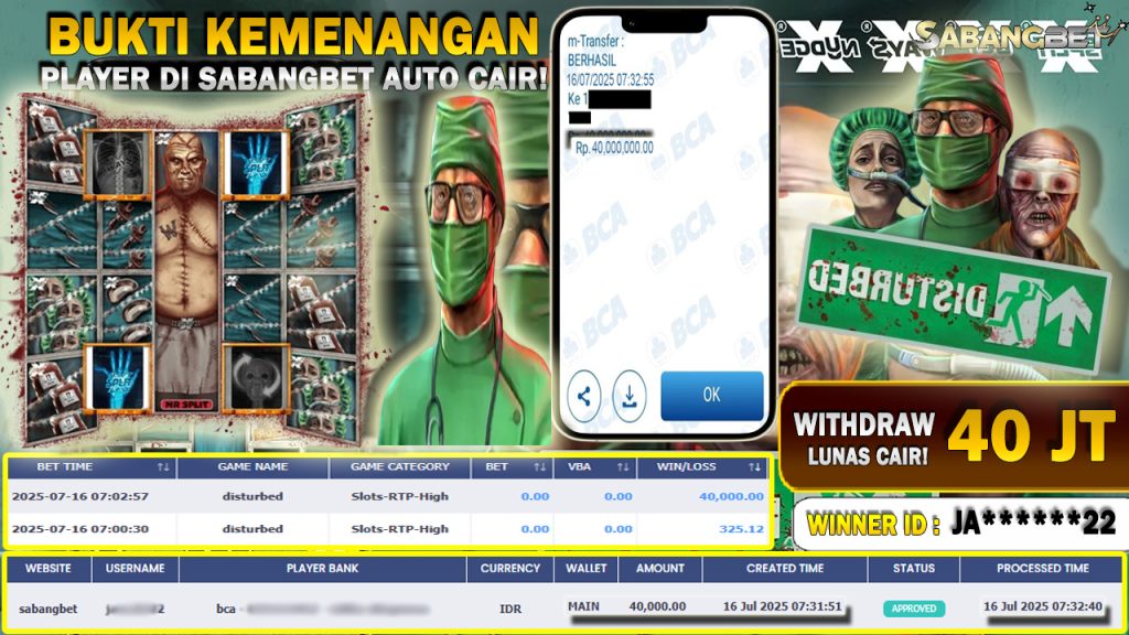 BUKTI KEMENANGAN 16 JULY 2025 DI GAME DISTURBED WD 40 JUTA