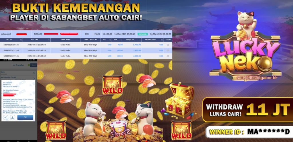 BUKTI KEMENANGAN 16 MARET 2025 DI GAME LUCKY NEKO WD 11 JUTA