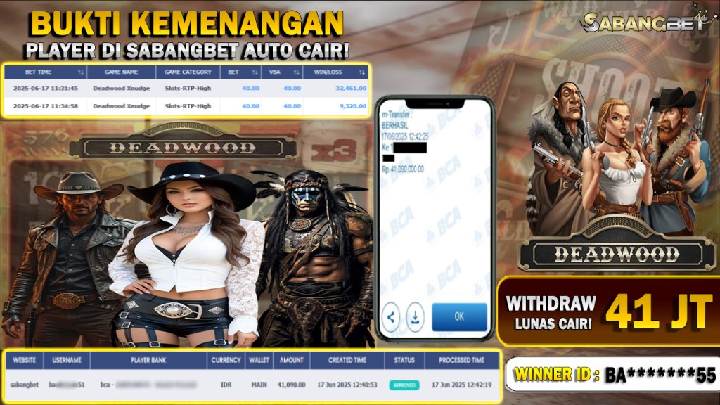 BUKTI KEMENANGAN 17 JUNI 2025 DI DEADWOOD XNUDGE WD 41 JUTA