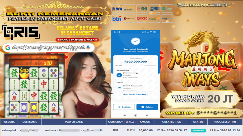 HOME Agen Judi SABANGBET merupakan Agen Judi Slot Gacor dan slot online yang membayar semua kemenangan member hingga lunas. Setiap pembayaran pada situs kami dilakukan dengan cara transfer ke rekening tujuan yang sudah di daftarkan pada situs slot online kami, Pembayaran hanya dapat di proses jika rekening yang di daftarkan telah valid dan dapat di transfer. Semua kemenangan member yang mendapatkan hadiah jackpot terbesar akan kami posting agar semua pemain dapat melihat bandar situs terpercaya SABANGBET ini membayar semua kemenangan member hingga lunas. Setiap postingan yang kami posting akan kami lakukan sensor pada nomor rekening 4 digit dan nama rekening untuk menjaga privasi dan kerahasiaan member. Postingan Jackpot yang kami posting agar member atau pemain yang belum pernah bermain bisa melihat Agen Judi Bukan Kaleng Kaleng Seperti SABANGBET ini, Semua postingan jackpot yang kami posting dapat di lihat data keasliannya melalui nomor reff yang di tunjukan pada bank atau mbanking saat kita melakukan transfer.
