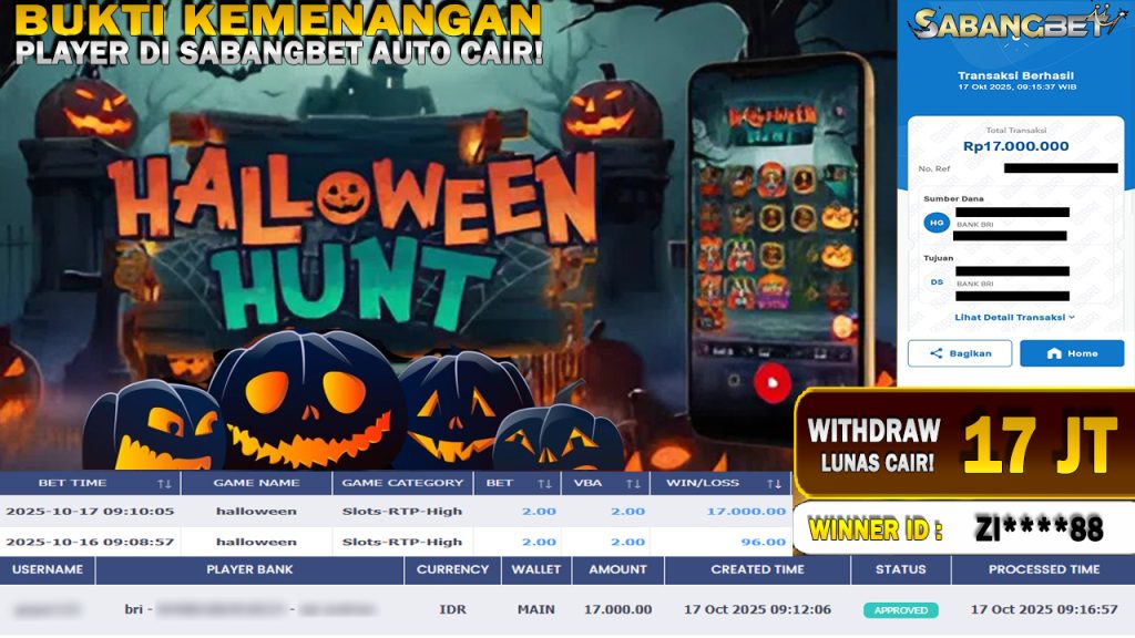 BUKTI KEMENANGAN 17 OKTOBER 2025 DI GAME halloween WD 17 JUTA