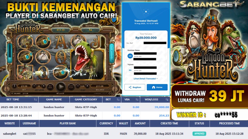 BUKTI KEMENANGAN 18 AGUSTUS 2025 DI GAME LONDON HUNTER WD 39 JUTA