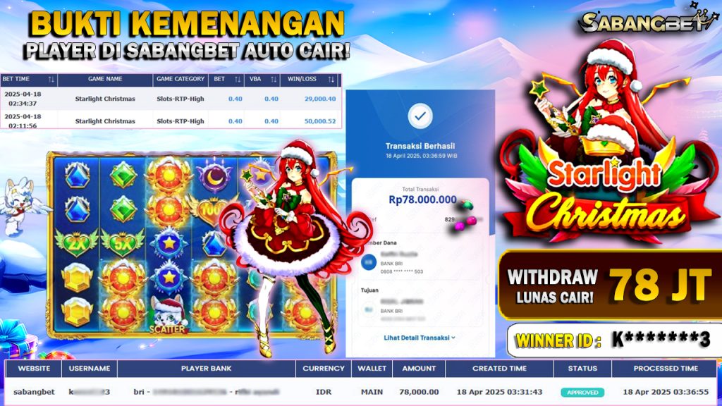 BUKTI KEMENANGAN 18 APRIL 2025 DI GAME STARLIGHT CHRISTMAS WD 78 JT