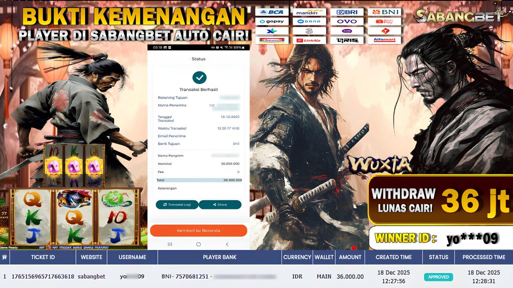 BUKTI KEMENANGAN 18 DESEMBER 2025 DI GAME WUXTA WD 36 JUTA