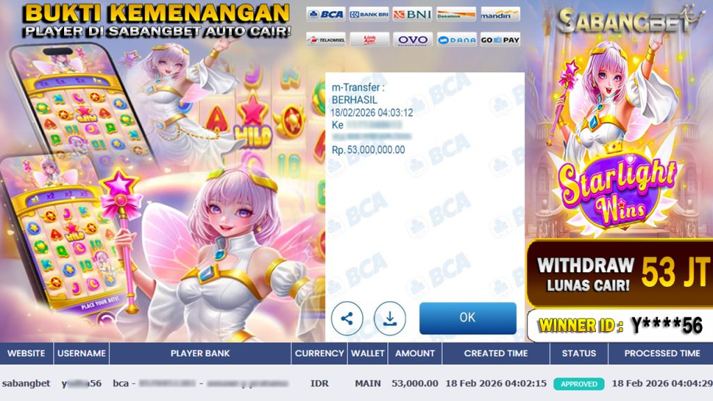 BUKTI KEMENANGAN 18 FEBRUARI 2026 DI GAME STARLIGHT WINS WD 53 JUTA