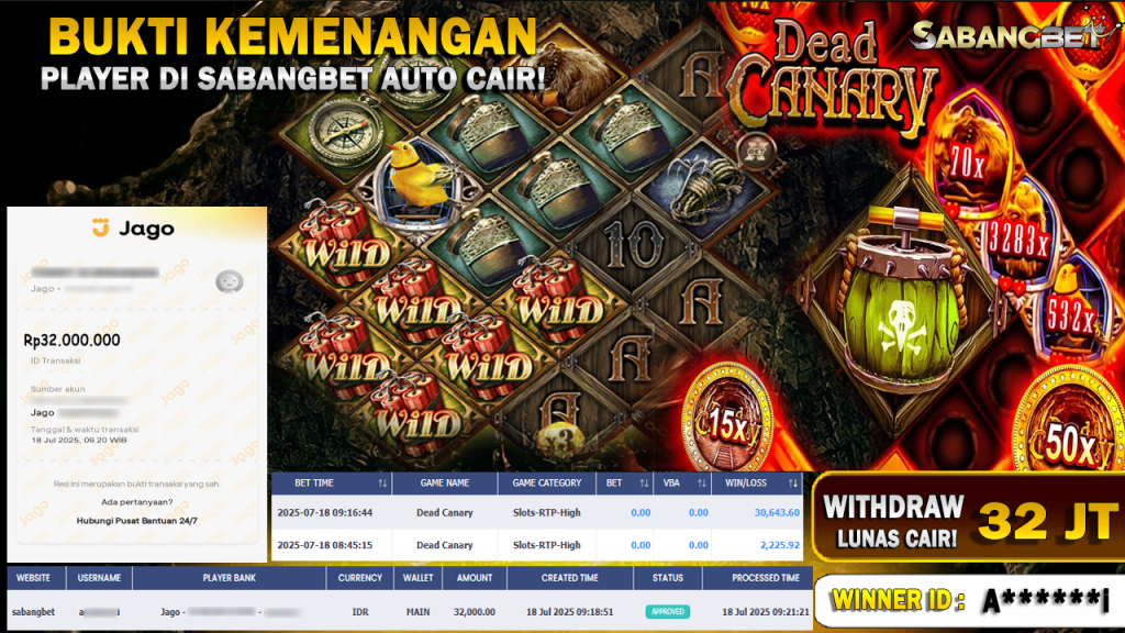 BUKTI KEMENANGAN 18 JULI 2025 DI GAME DEAD CANARY WD 32 JUTA