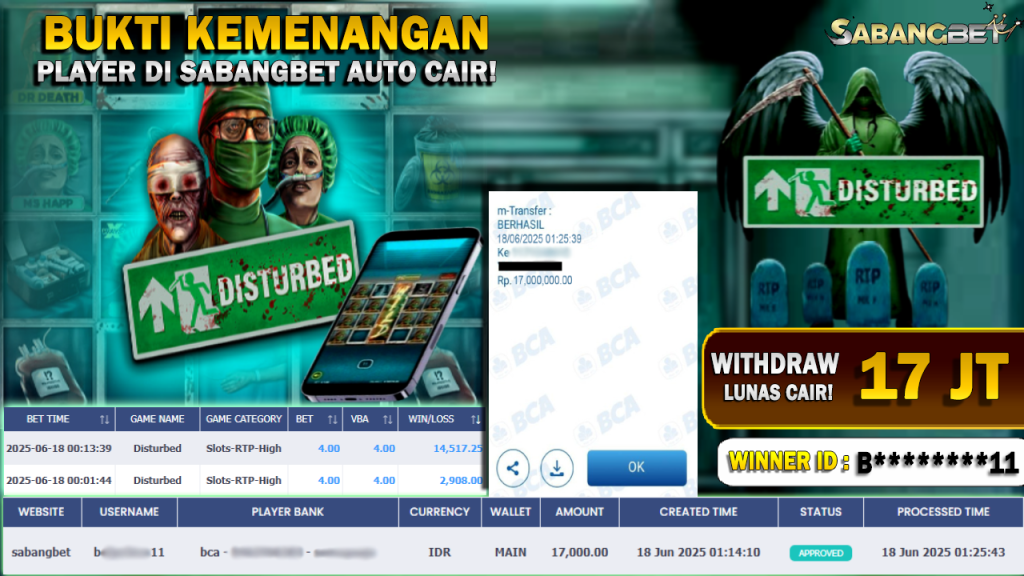 BUKTI KEMENANGAN 18 JUNI 2025 DI GAME DISTURBED WD 17 JUTA