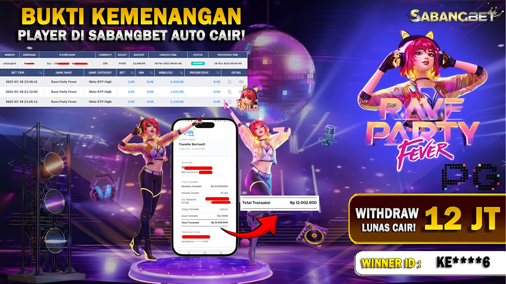 BUKTI KEMENANGAN 18 MARET 2025 DI GAME RAVE PARTY FEVER WD 12 JT